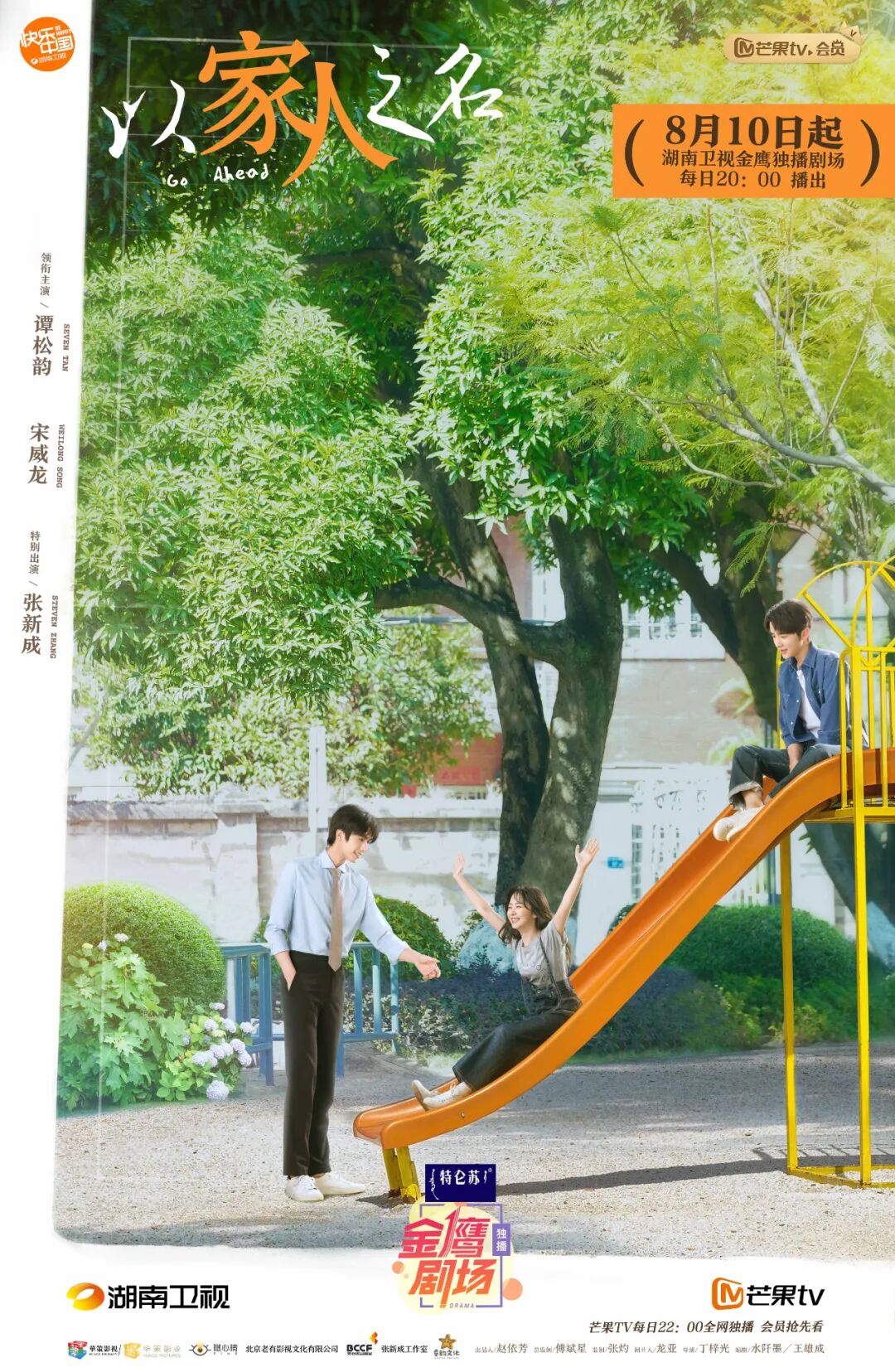 家人,让彼此成为更好的人。由丁梓光执导,谭松韵、宋威龙领衔主演,张新成特别出演,涂松岩主演,张晞临友情出演的家庭成长治愈剧《以家人之名》8月10日起湖南卫视金鹰独播剧场每日20:00播出。该剧聚焦90后原生家庭,讲述了三个没有血缘关系的小孩成为彼此新的家人,三兄妹一起长大,彼此扶持,共同成长,用爱治愈伤痛,成为更好的自己的亲情故事。三小无猜的相伴成长,温馨的家庭日常,将增添这个夏天的烟火气息,带你走进亲切熟悉的家人时光。